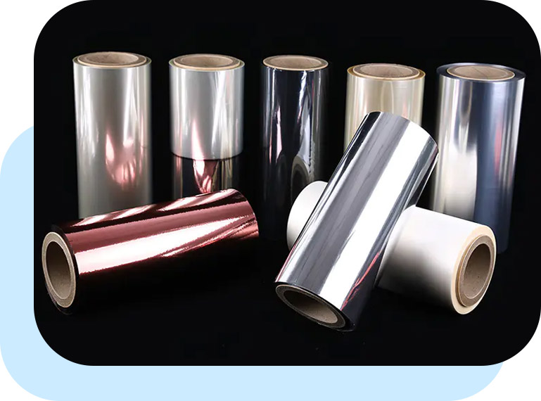 8 Productos integralesVarias películas metalizadas (VMPET/VMCPP/VMBOPP), película de recubrimiento (PVDC/acrílico/PVA), película Alox Caoted (pet de alox para laminación/impresión), innovación continua de productos nuevos y de alta gama.
